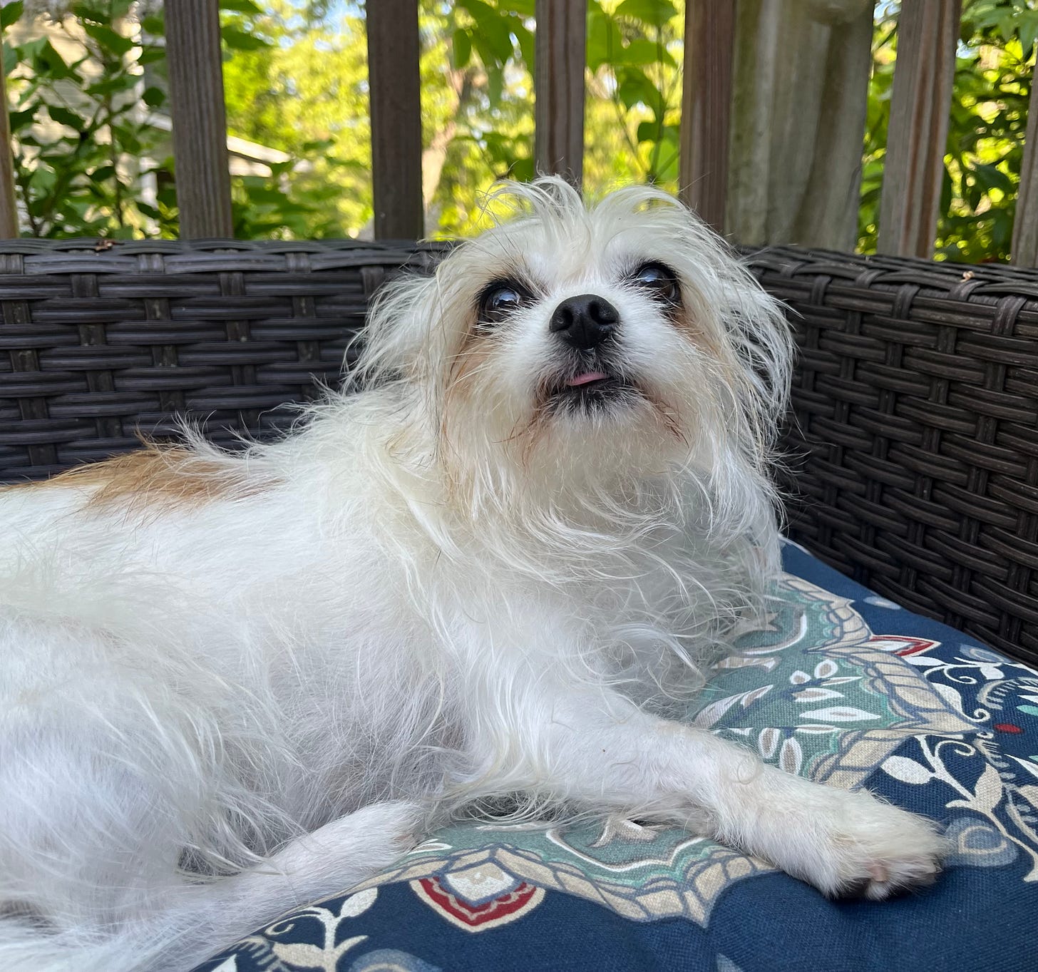 Nacho relaxes on the back deck.